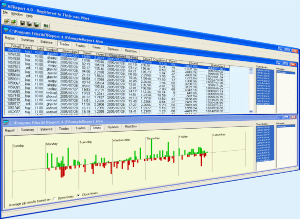 ![]() IMPORTANT NOTICE: MTReport is no longer available to new customers. Analyse your MetaTrader reports with this easy-to-use tool. View your balance graph, try new money management strategies, or learn more about your trading with the build-in Risksim simulator!